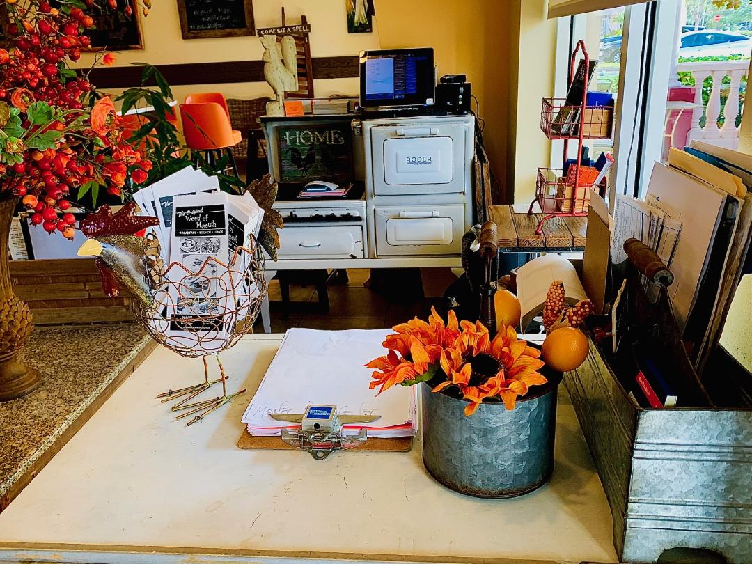 All the dining options are equally pleasant. We chose the inside. It was comfortable and dotted with antiques and Americana decor. We were taken particularly with the antique stove which they used as a desk at the front check-in counter.