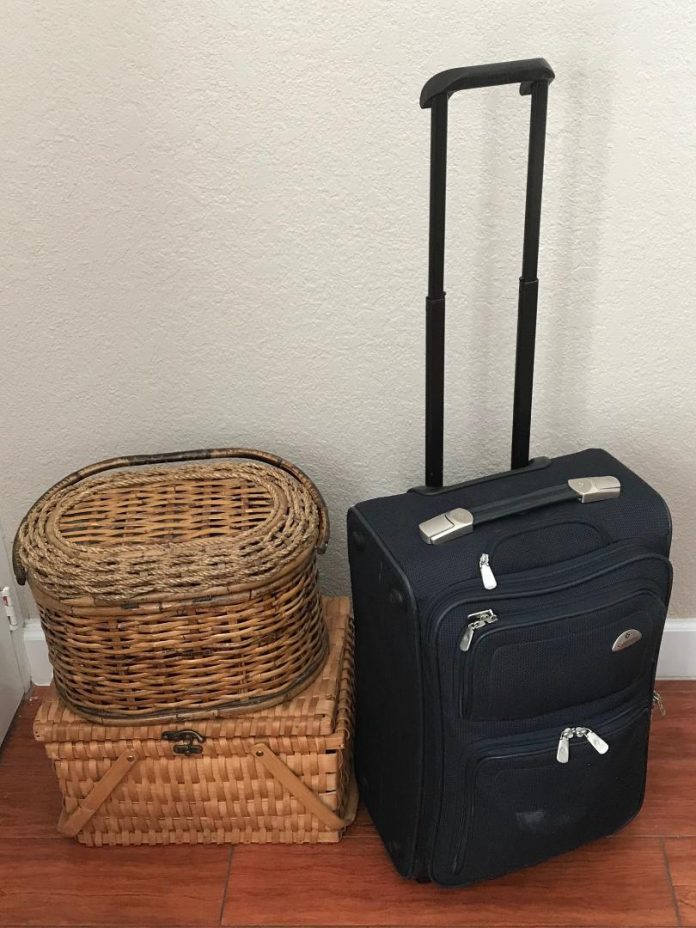 Over the course of time, we have developed a number of pretty-much pre-packed cases that stay ready to go out the door. We have two baskets and a cooler that generally can be taken to the car at a moment’s notice, leaving only our suitcase to be packed for our current excursion. For instance, the Travel Basket stays ready.