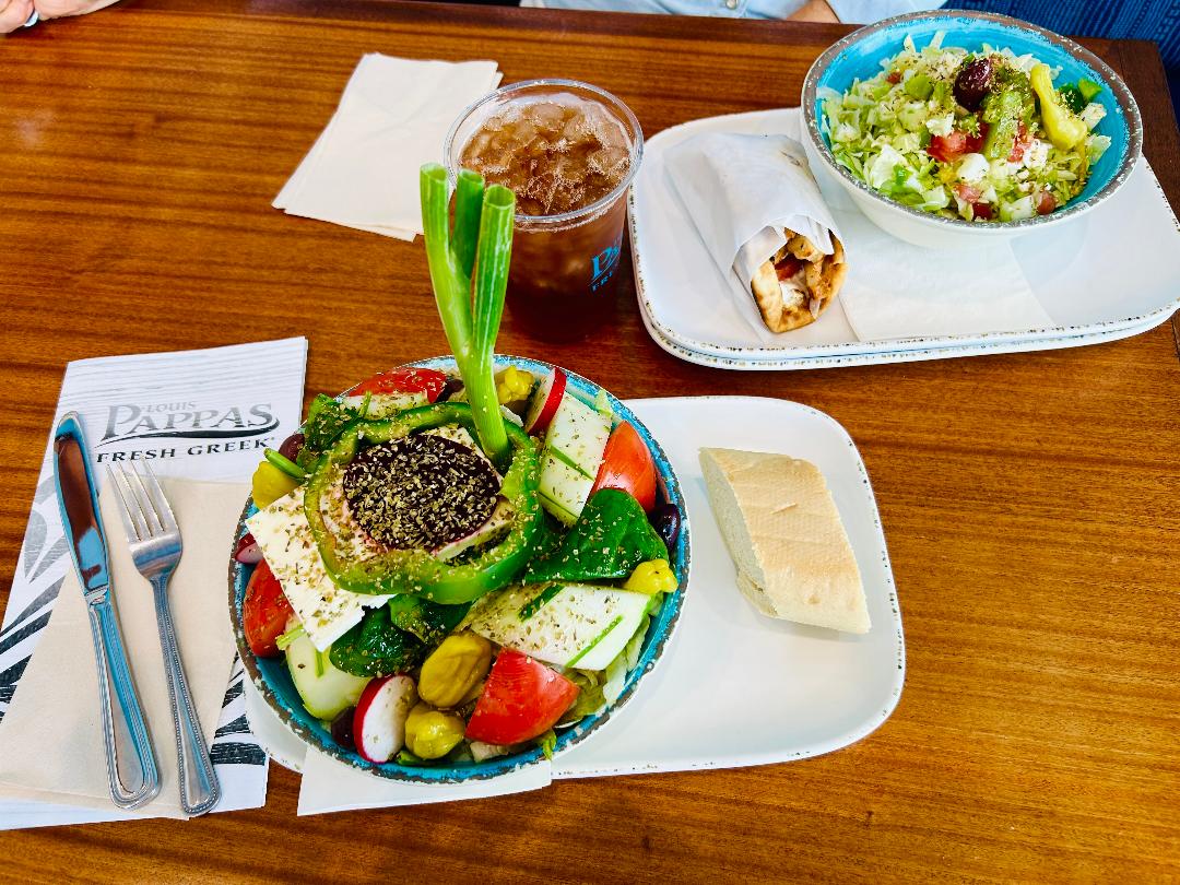 After perusing the menu, (and looking around the dining area to see what others were having), I opted for the Pappas Traditional Salad. After all, how can you go to a new place and not try their signature dish.